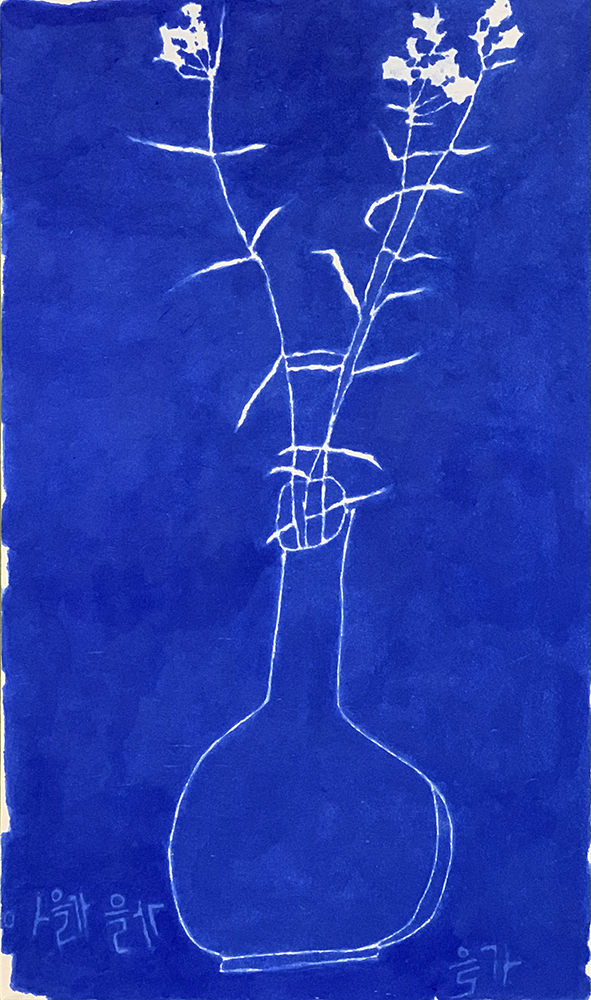 GARDENBLUE, 58x30cm, Mixed media on hanji, 2021